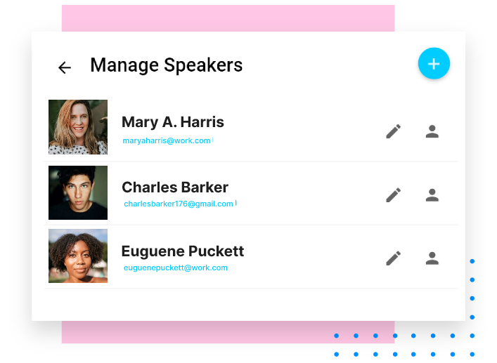 Simplify tasks like scheduling, communication, and logistics Eventcombo’s speaker management. Our all-in-one solution ensures your speakers are well-prepared and fully engaged, helping your event flow seamlessly.